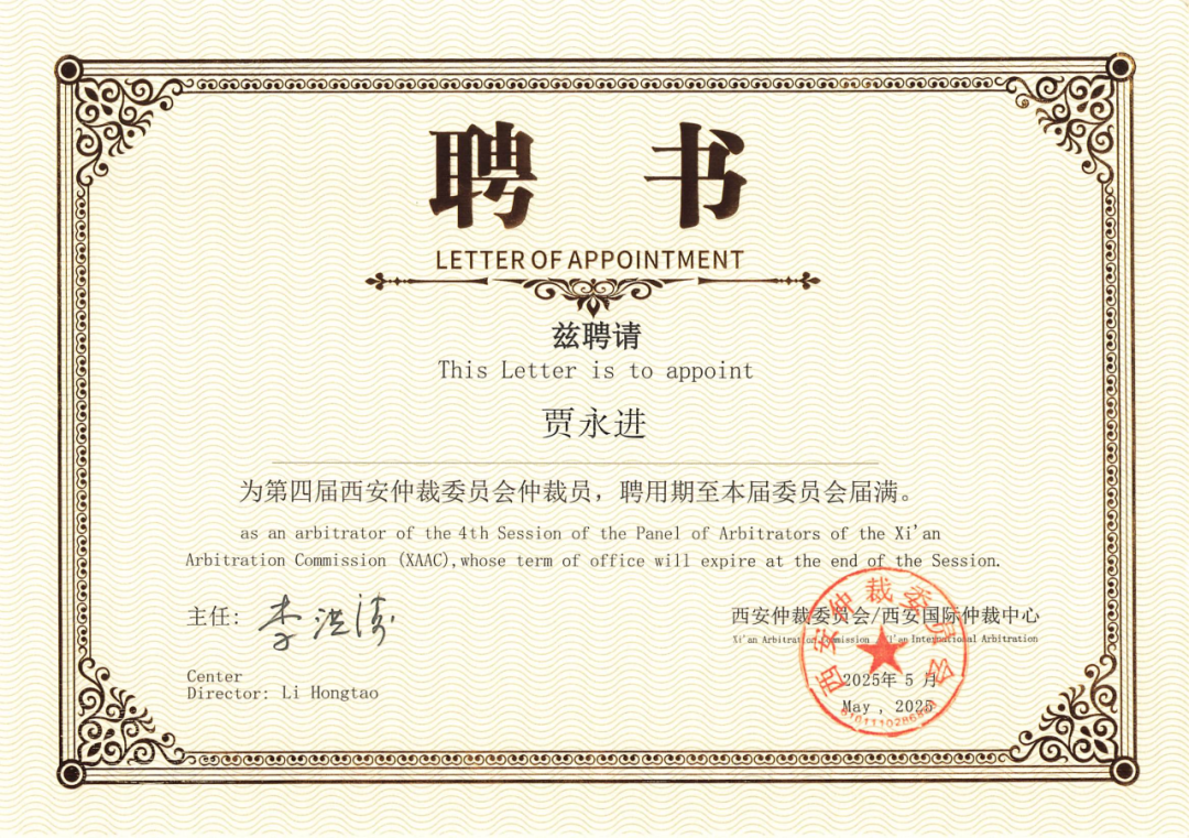 近日,西安仲裁委員會召開第四屆仲裁員聘任大會,樂友律師所高級合伙人、合伙人會議主席賈永進(jìn)律師獲續(xù)聘擔(dān)任西安仲裁委員會第四屆仲裁員。這既是對賈永進(jìn)律師個人專業(yè)能力與職業(yè)操守的權(quán)威認(rèn)可,也彰顯了樂友律所在爭議解決領(lǐng)域的專業(yè)實力。
